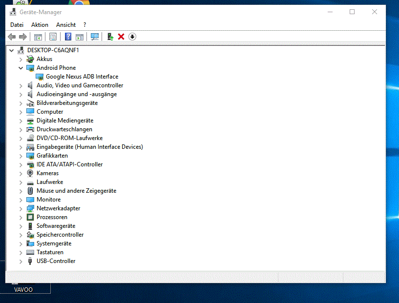 sto Device Manager αναγνωριζει την συσκευή ωs google nexus adb interface ,