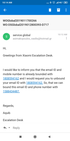 Εν το μεταξύ το account που μου λένε να κάνω unbound δεν είναι το δικό μου. Πήγα συο κινητό έκανα log out μετά πήγα στο i.mi.com έκανα delete την συσκευή. Πρέπει να κάνω κάτι άλλο?