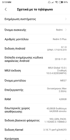 Καλησπερα. Έχω το Xiaomi redmi 5 plus 4/64 και δε παίρνει πλέον ενημερώσεις έχει σταματήσει να κάνει αναβάθμιση λογισμικού στην 10.0.4.0 γνωριζει κανεις κάποιον εύκολο τρόπο να πάρω την πιο πρόσφατη ενημέρωση χωρίς root χωρίς επαναφορά εργοστασιακών ρυθμίσεων και χωρίς να σβηστουν κάποια από τα αρχεία μου;