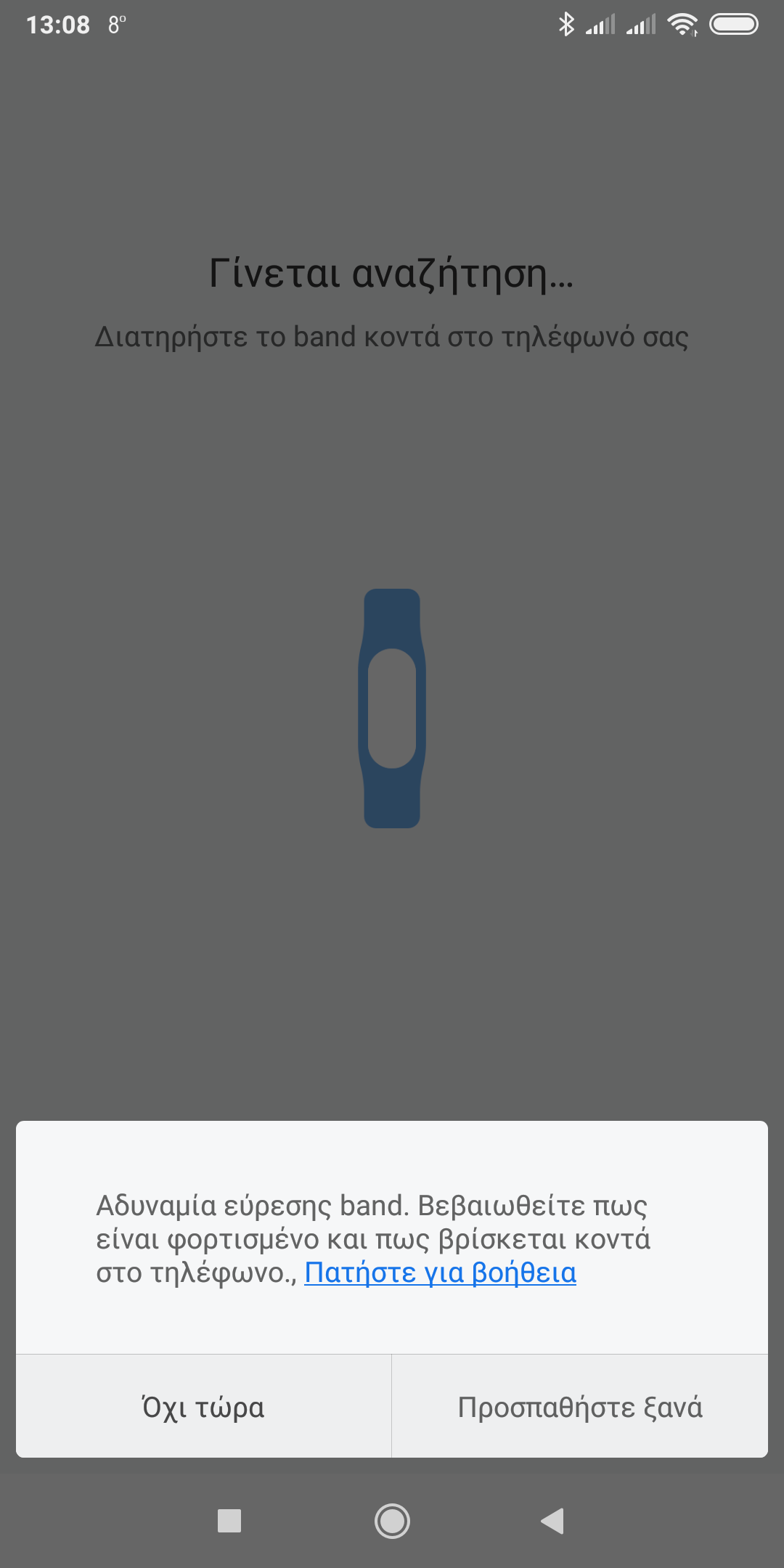 το Mi band 2 μου γράφει "αδυναμία εύρεσης band"