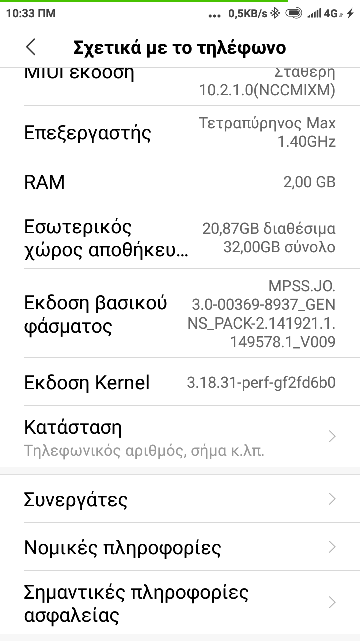 • Ανέβασε μας ένα screenshot από το σχετικά με το τηλέφωνο να δούμε τι rom έχεις επάνω.