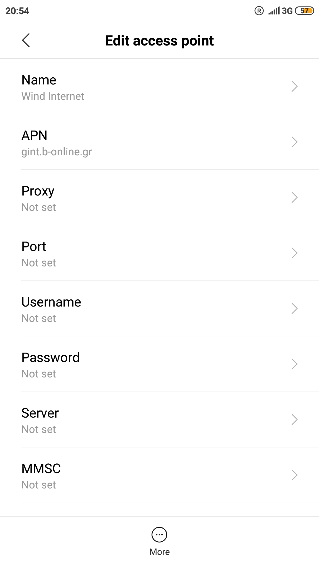 Τύπος APN: Internet Όλα τα άλλα στοιχεία μένουν κενά