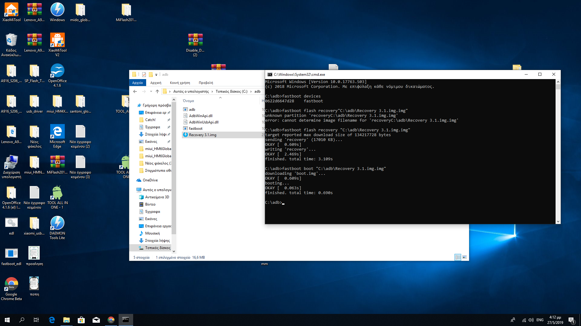 Ανέβασε screenshot από τον φάκελο με το adb, twrp και από το παράθυρο εντολών, να φαίνεται η εντολή που δίνεις.