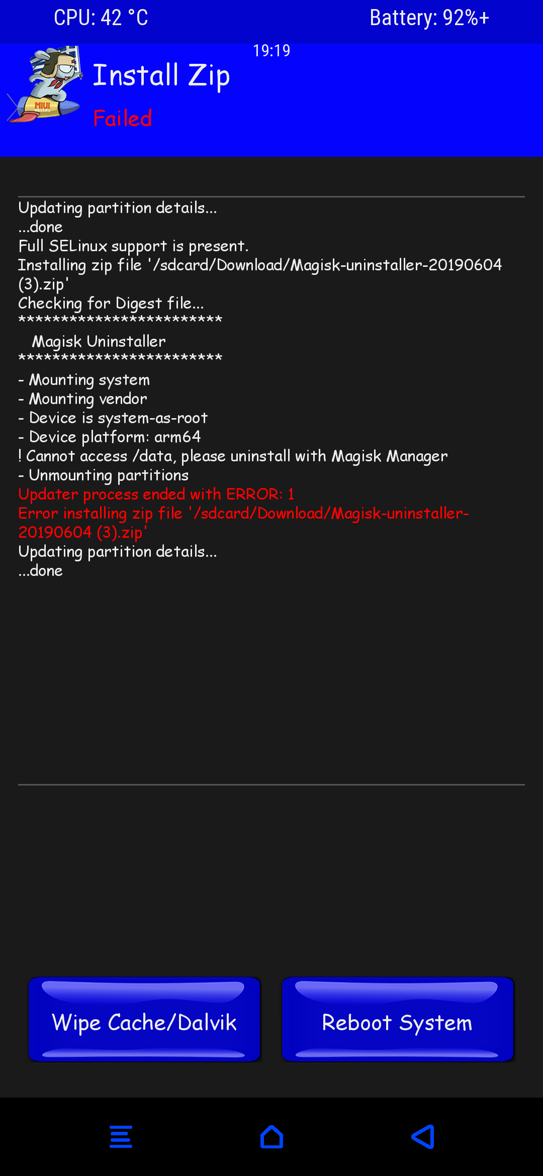 Το σφάλμα μέχρι τώρα από twrp είναι το ίδιο..