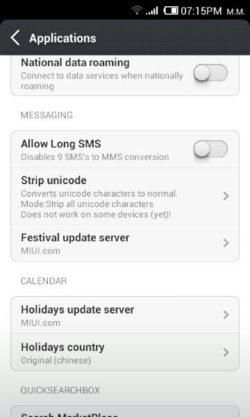 Εχει πολλα να πειραξεις στο wsm/mi tools , και τα πιο βασικα για μενα , ειναι οτι βαζεις 160 χαρακτηρες στα sms και επιλογη για reboot στο recovery με το power menu.