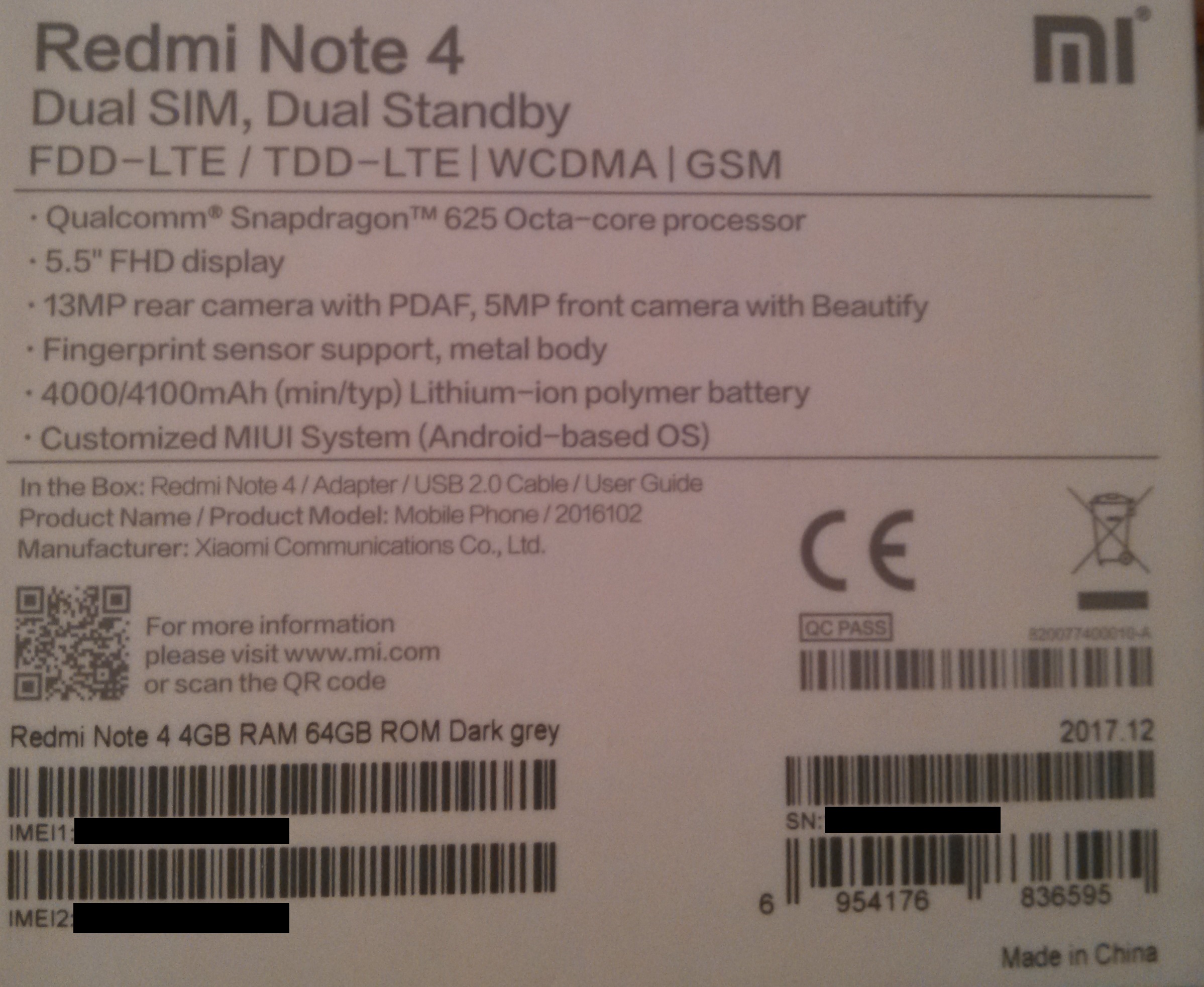 Διευκρινηση μοντελου Redmi Note 4