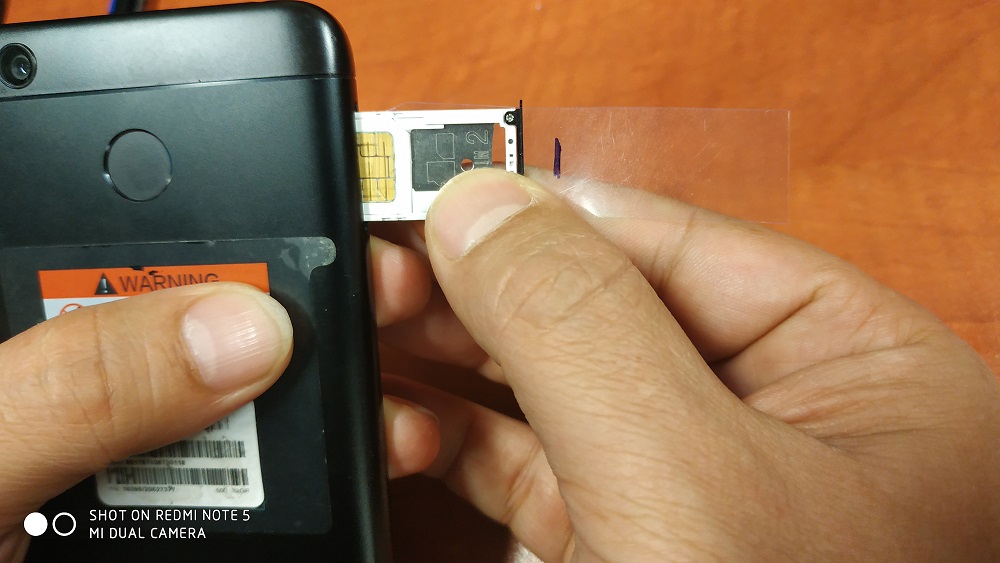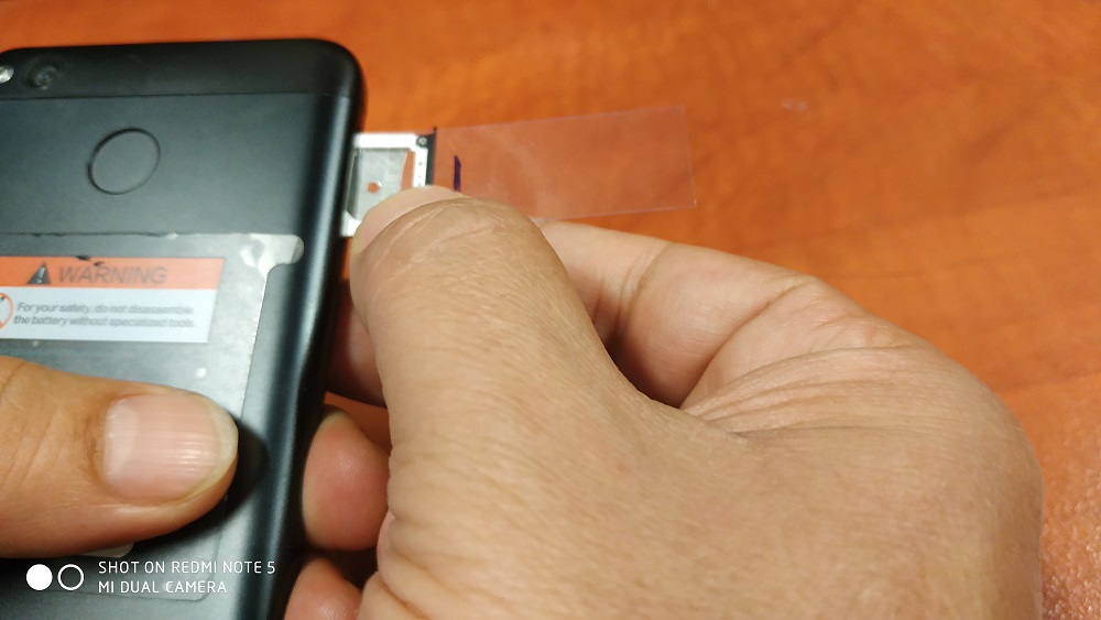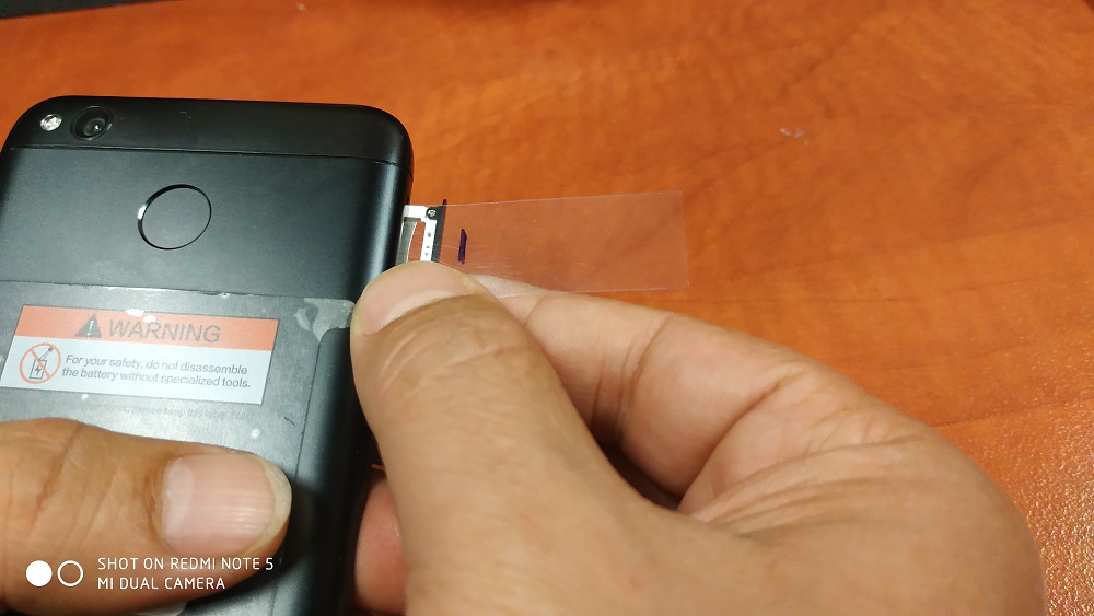 Καλό θα είναι να κάνουμε και ένα σημάδι στο έλασμα που κόψαμε, ώστε να ξέρουμε πόσο μέσα περίπου πρέπει να μπει για να φτάσει στην sim που έχει κολλήσει