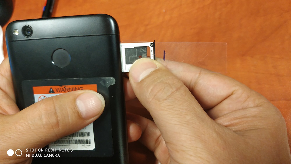 Σιγά-σιγά...και με ελαφρές κινήσεις, αρχίζουμε να βάζουμε το έλασμα στην υποδοχής του sim tray, από την πλευρά που μπαίνει και η sim