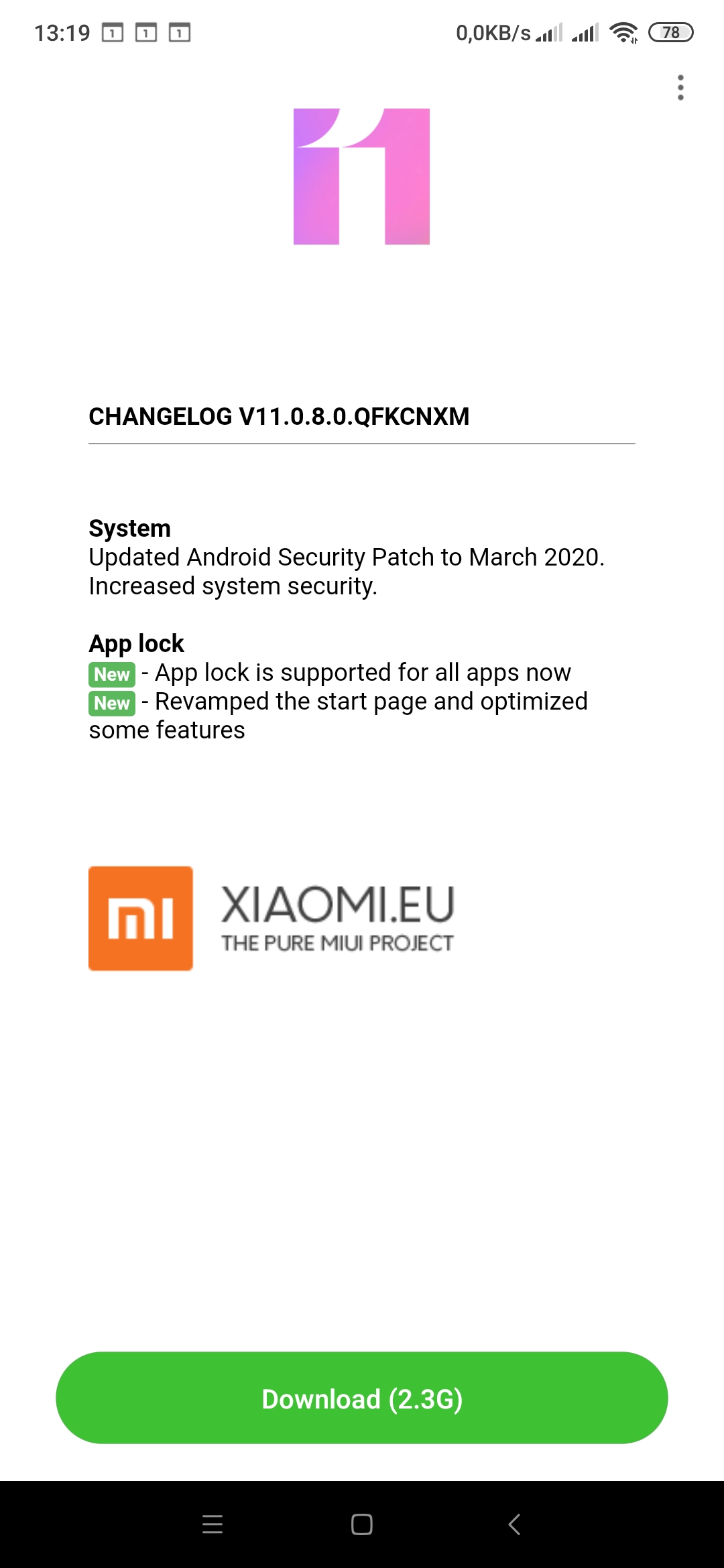 Στον έλεγχο ενημέρωσης λέει MIUI 11 | V11.0.8.0 QFKCNXM