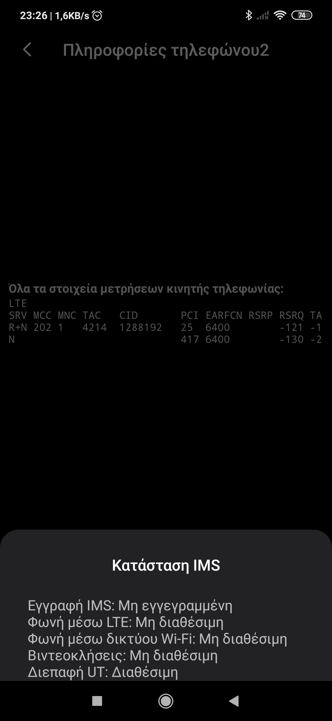 Το ότι λέει στην κατάσταση ims φωνη μέσω δικτύου wifi :μη διαθέσιμη