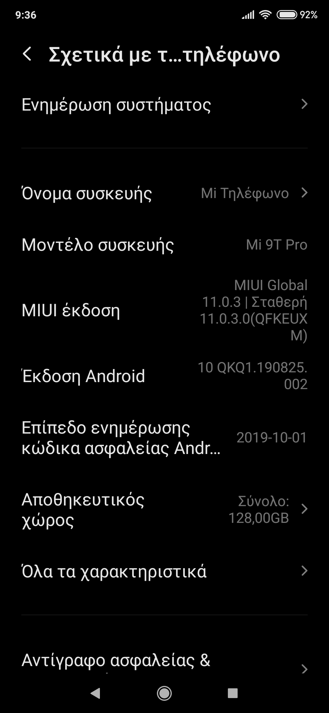 Μετά την αναβάθμιση σε MIUI 11.0.3.0 QFKEUXM παρατηρώ τα εξής: