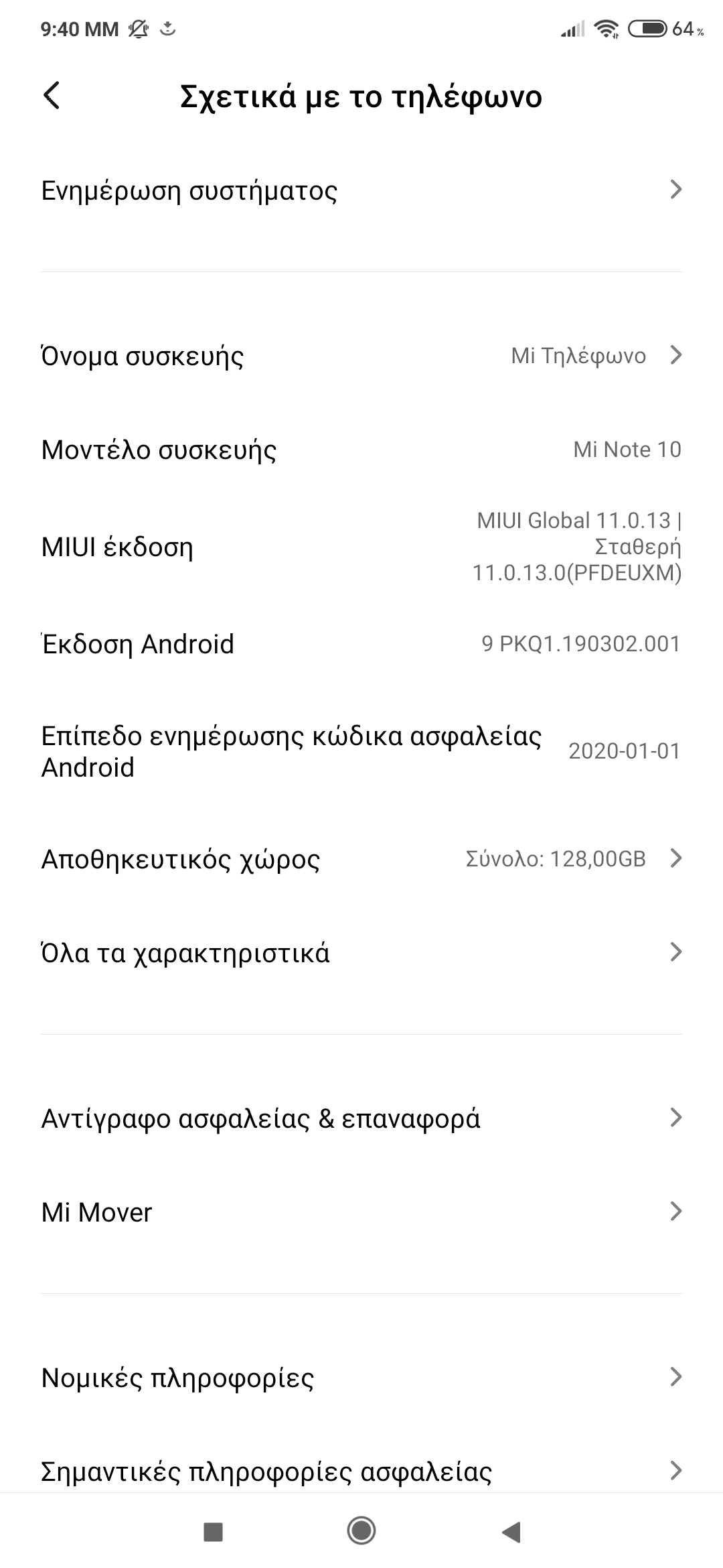 Παιδιά καλησπέρα. Αφού έχω το Redmi Pro αρκετά χρόνια , αποφάσισα και αγόρασα το ΜΙ ΝΟΤΕ 10. Απο το κατάστημα μου είπαν ότι έχει εγκατεστημένη την Global Europe. Χρειάζεται να κάνω κάτι για ξεκλείδωμα , ισχύει ο κωδικός που έχω απο το Redmi Pro sto λογαριασμό της ΜΙ;. Προσπαθώ να βρώ κάποιο κείμενο τι να κάνω όπως είχα βρει τό γεναρη του 2017 . Κάποιος να με καθοδηγήσει;. Ακόμα δεν το έχω ενεργοποιήσει με τόσα που διάβασα για κρασάρισμα κλπ. κλπ.Ο/H Octaviastikos έγραψε: