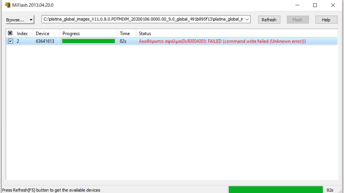 Επελεξα το images Στο MIFLASH tool ξεκιναει κανονικα αλλα μετα κρασαρει