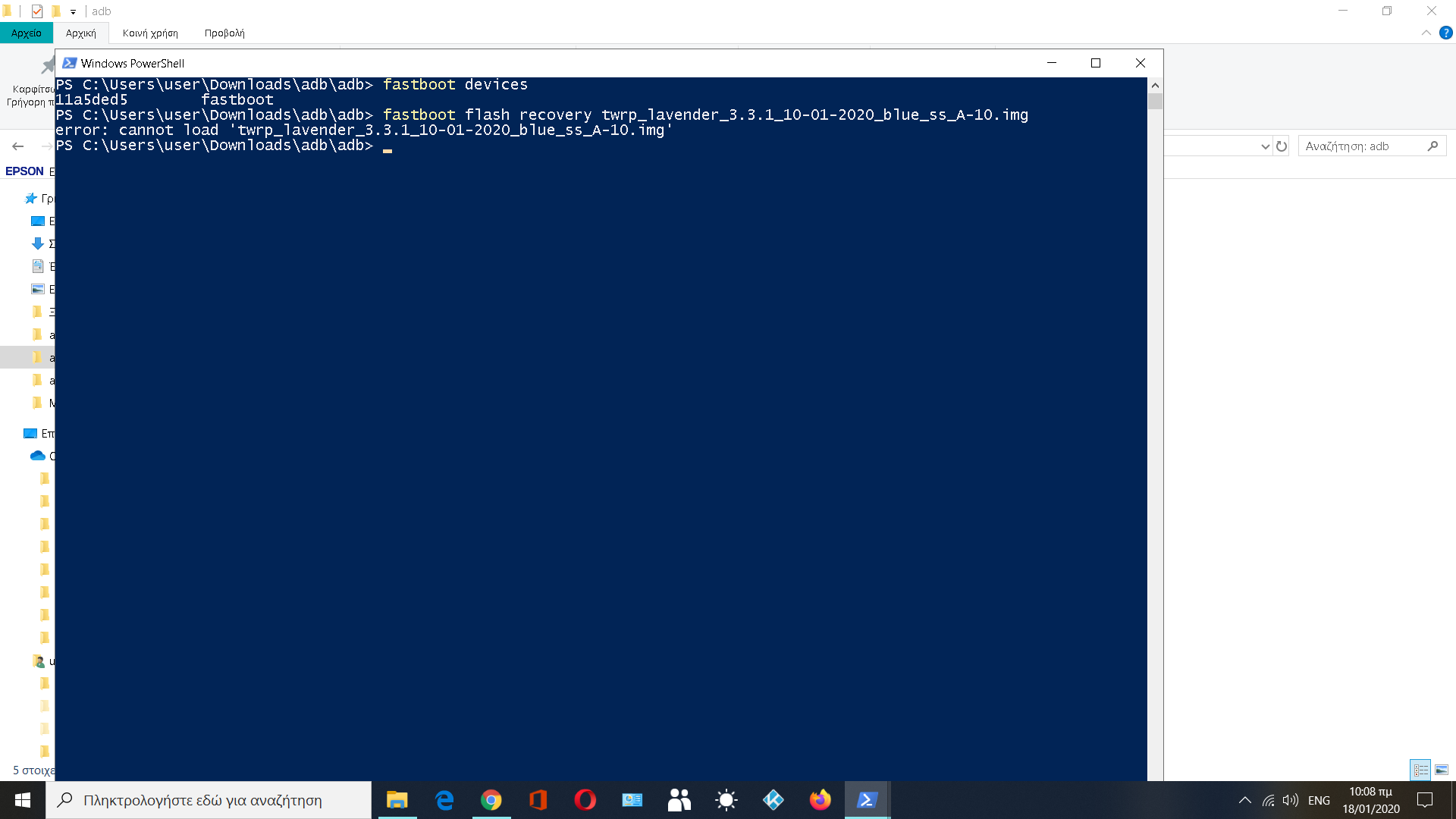 την εντολη αυτη την εγραφα μετα που ανοιγα το παραθυρο εντολων ,εδινα πρωτα fastboot devices, meta fastboot flash recovery twrp.lavender-3.3.1- αλλα χωρις την ημερομηνια 10-01-2020. και το αρχειο αυτο το εχω μεταφερει στο φακελο που εχω το adb και το fastboot exe. Mηπως ο φακελος δεν ειναι στη σωστη θεση στον υπολογιστη?