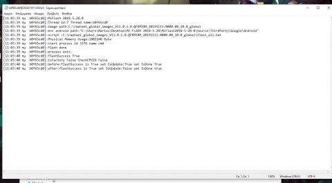 Πάτα στο miflash εκεί που λέει Log, βρες το τελευταίο log .txt και ανέβασε το εδώ να δούμε τι λέει