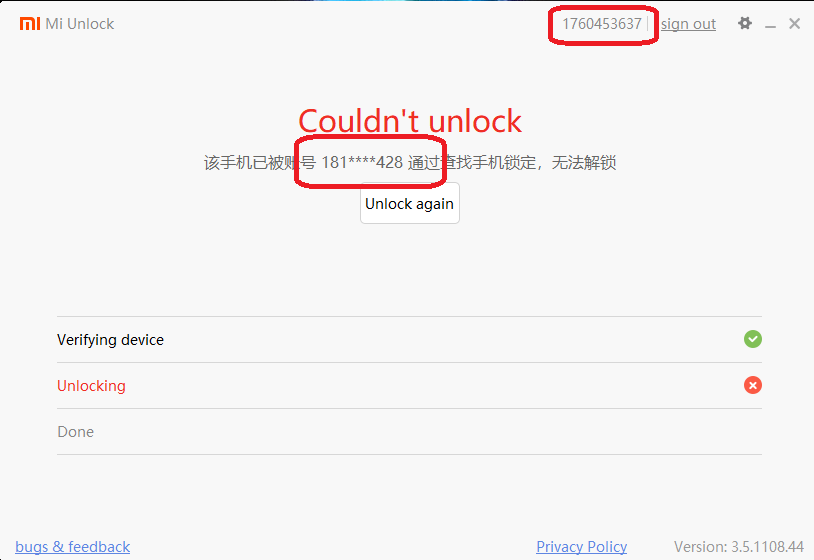 Ενω πηγα Developers Options...ΟΕΜ Θνλοψκ kai USB Debugging κανω εισοδο στο Mi Unlock με το Email του Mi Account μου μου βγαζει πως δεν ειναι Associate με το κινητο μου.