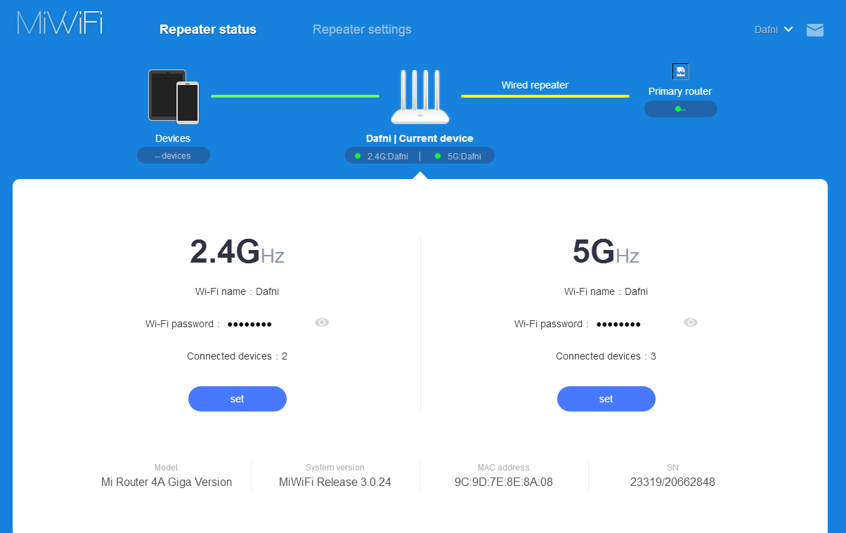 • Επειδή θέλω να χρησιμοποιήσω το Router 4Α Giga σαν Repeater (με ίδια ονομασία, κωδικούς κλπ) σε άλλο όροφο (έχω περασμένο καλώδιο, άρα μπορώ να συνδέσω τα 2 ρούτερ μεταξύ τους) ποια είναι η διαφορά στο μενού wifi repeater mode and wired repeater mode και πια να επιλέξω? Ευχαριστώ για την όποια απάντηση - βοήθεια!