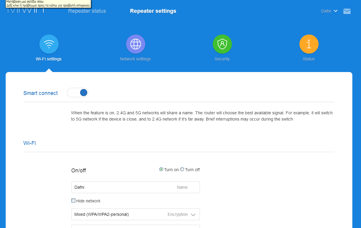 Επειδή θέλω να χρησιμοποιήσω το Router 4Α Giga σαν Repeater (με ίδια ονομασία, κωδικούς κλπ) σε άλλο όροφο (έχω περασμένο καλώδιο, άρα μπορώ να συνδέσω τα 2 ρούτερ μεταξύ τους) ποια είναι η διαφορά στο μενού wifi repeater mode and wired repeater mode και πια να επιλέξω? Ευχαριστώ για την όποια απάντηση - βοήθεια!