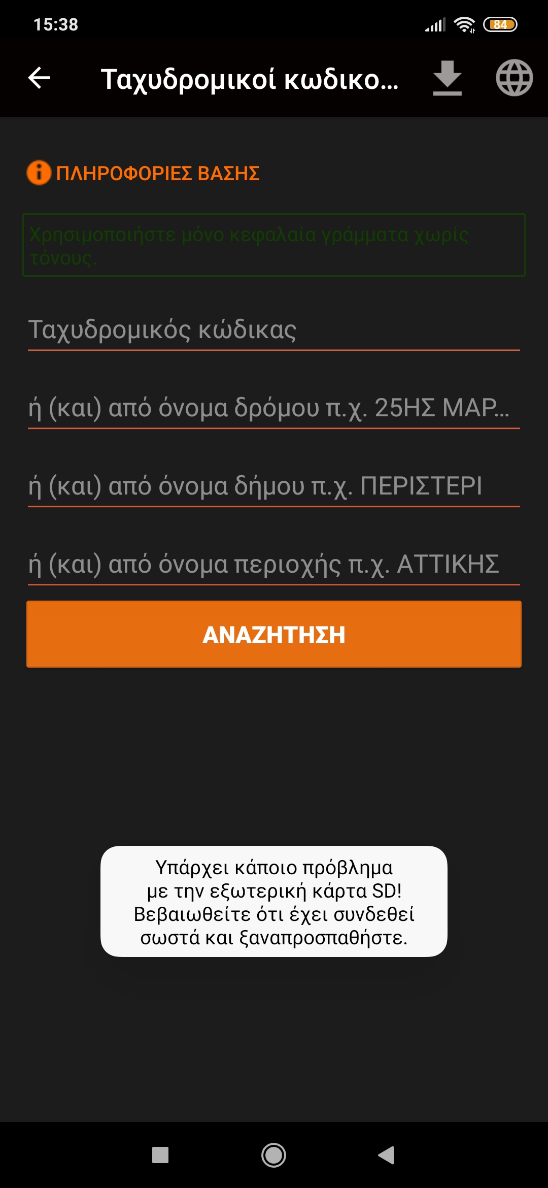 και δευτερον στην αυτοματη ληψη offline καταλογων και ταχυδρομικων κωδικων μου εμφανιζει το μνμ οτι δεν υπαρχει καρτα sd.η διαδρομη θεσης ειναι αυτη
