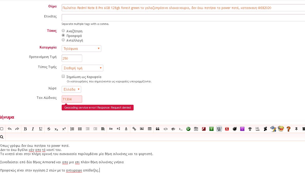 προσπαθω να βαλω αγγελια αλλα το παιρνω πάντα λάθος Geocoding service error! Response: Request denied