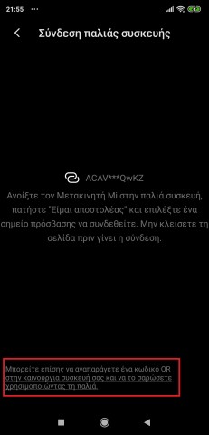 Η σύνδεση μπορεί να γίνει και μέσω κωδικού QR. Το επιλέγουμε