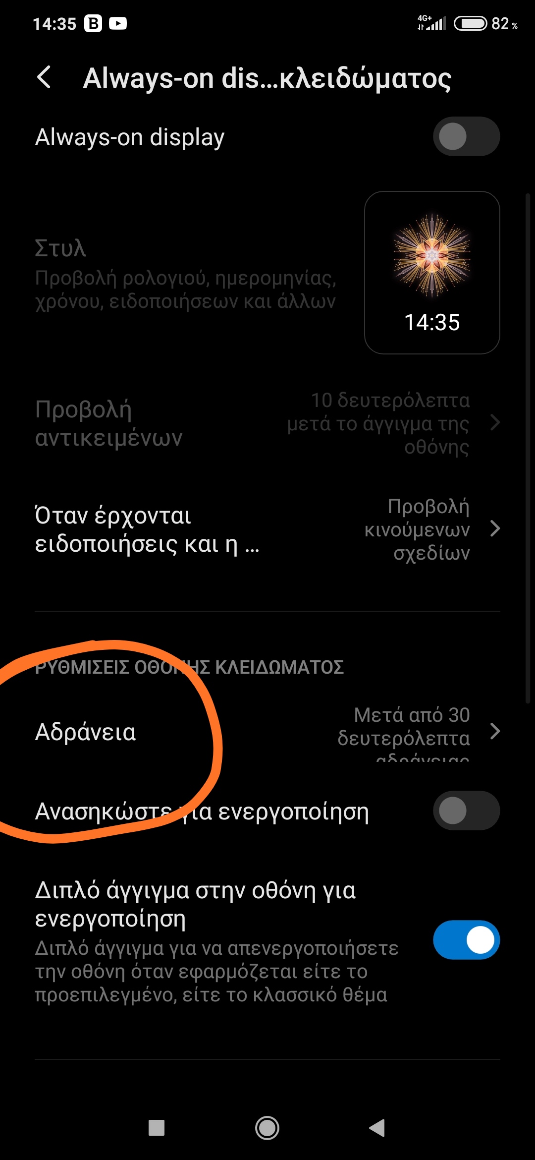 Χαίρετε! Έχω ένα πρόβλημα στο xiaomi mi 9 lite! Στην επιλογή "αδράνεια" δεν μου εμφανίζει την επιλογή"ποτέ".