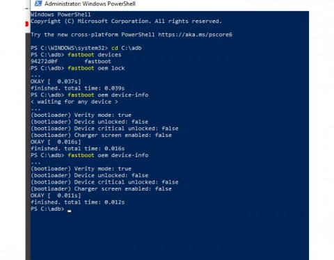 Ξανά fastboot oem lock και test αν κλείδωσε...