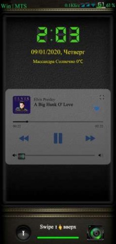 Double Tap in the center - calls the music player, swipe down from the center - calls the left screen.