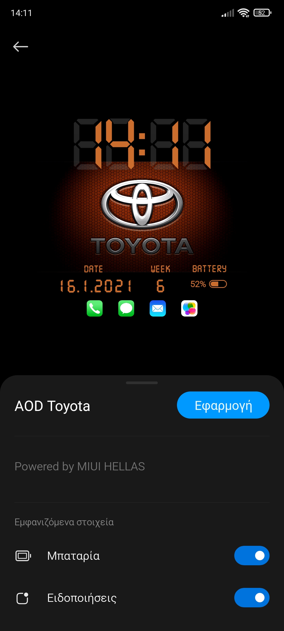 Γεια χαρά σε όλους, Γιώργο έχω φτιάξει ένα AOD ( Always On Display ) για τους Toyota κηδες
