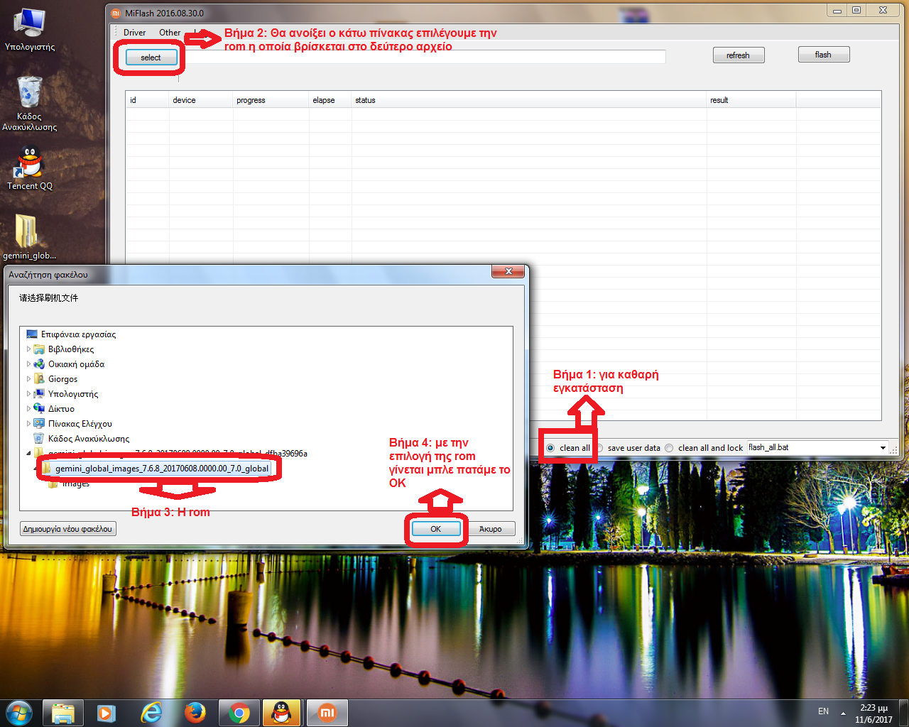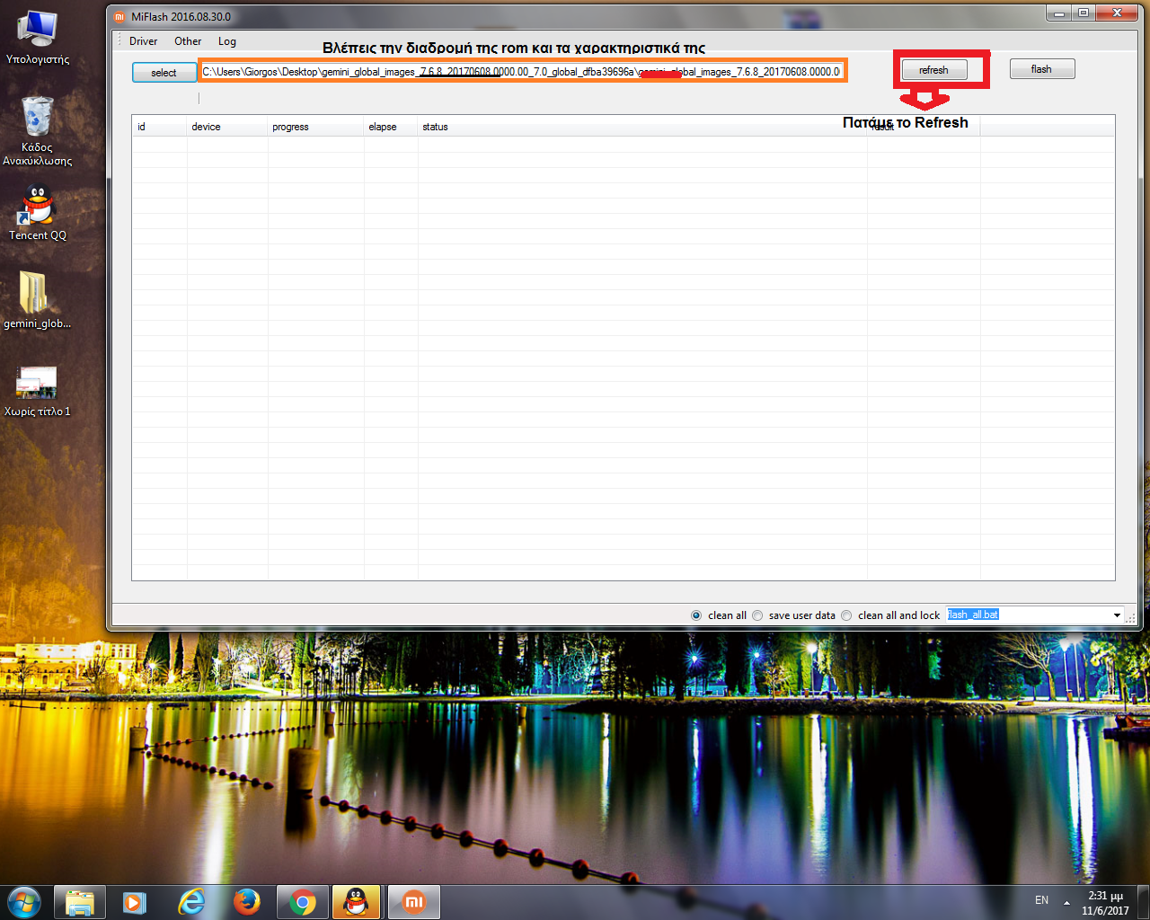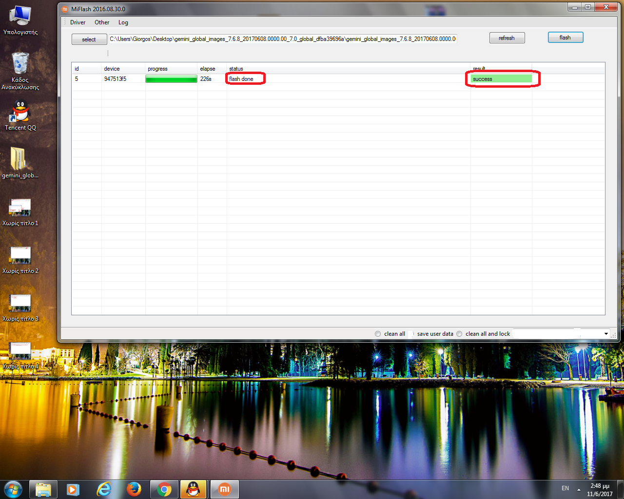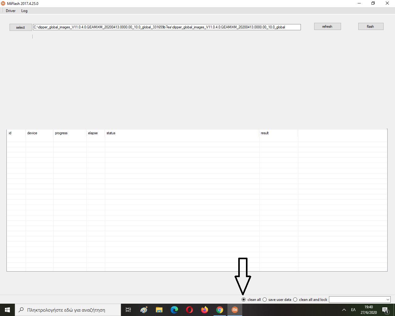 Τρέχεις το Mi flash tools και επιλογή clean all
