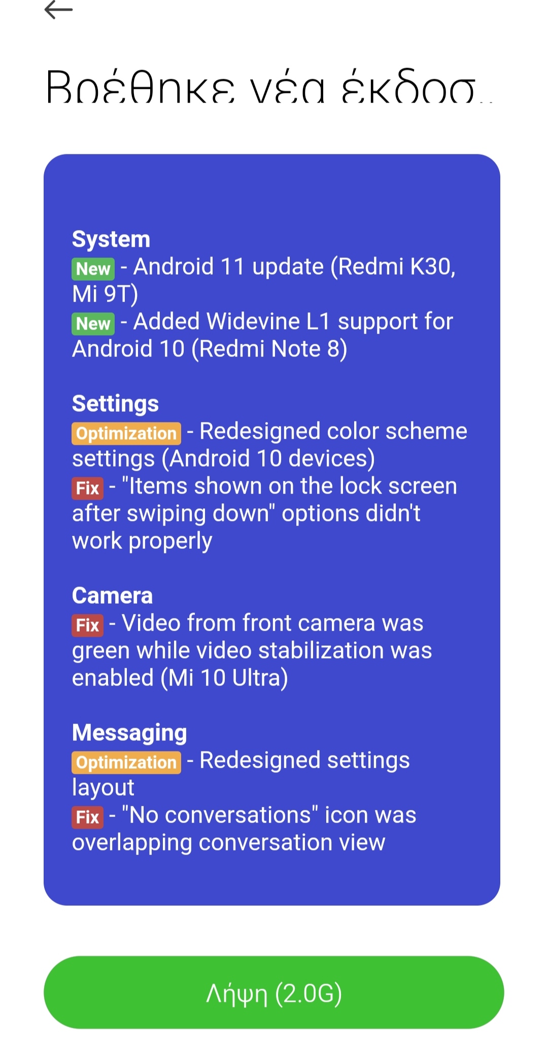 Την πέρασα και εγώ. Άλλη μια...βαρετή ROM για το ginkgo που δεν λύνει κανένα από τα προβλήματα που έφερε το MIUI 12 (full screen gestures, ακανόνιστη συμπεριφορά widgets, L3 widevine) αλλά ευτυχώς δεν τα κάνει και χειρότερα. Από ταχύτητα ελάχιστα καλύτερα πάμε. Όσο για μπαταρία, τα ίδια. Ένα ενιαμισάωρο SOT το έχει για πλάκα η συσκευή.Ο/H kostas1alina έγραψε: