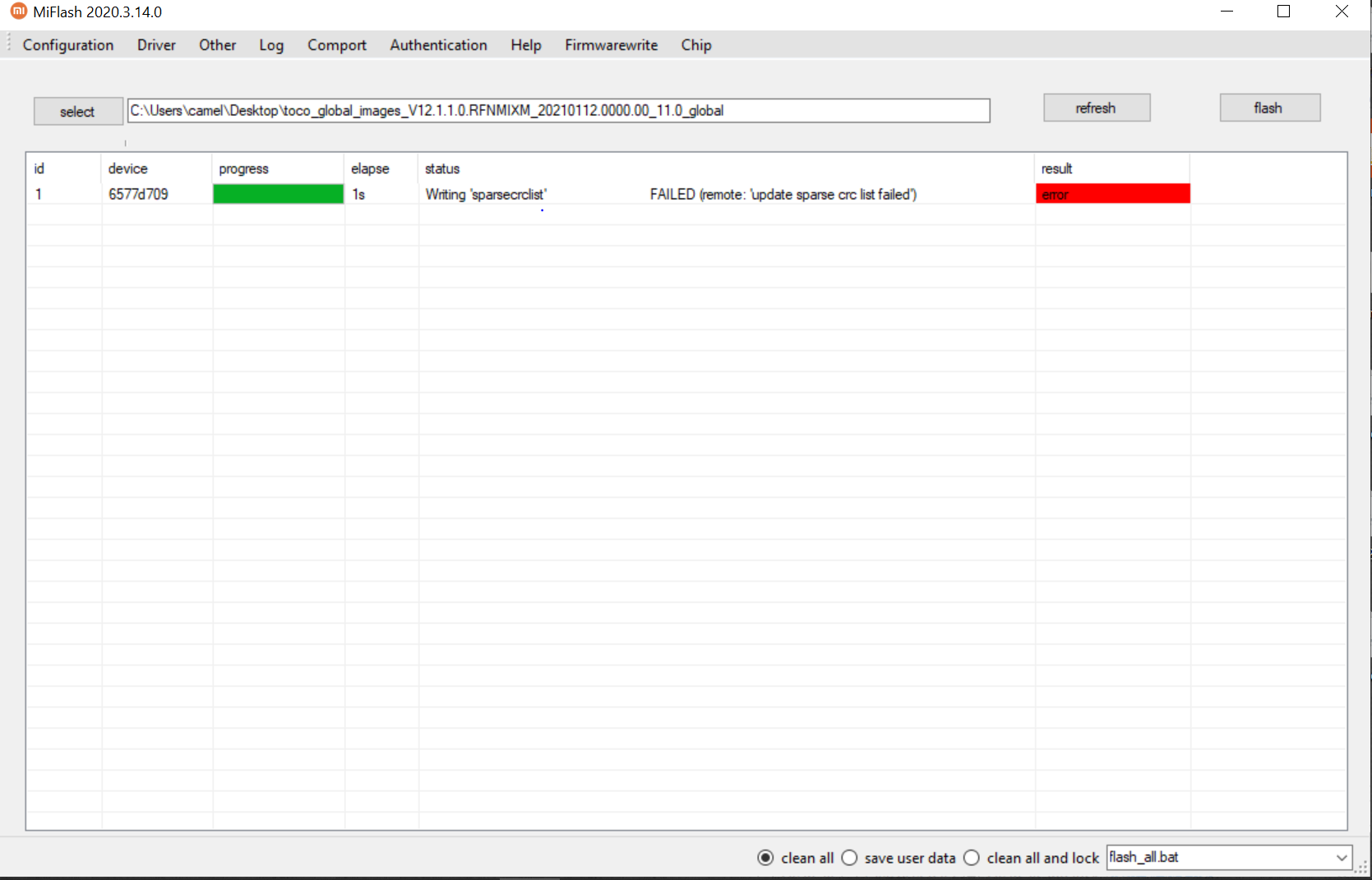Επίσης,αν επιλέξω στο miflash clean all and lock σύμφωνα με την ρομ που ήδη έχω (11.0.3.0 QFNEUVF) πιστεύεις ότι θα έχω κάποιο πρόβλημα;
