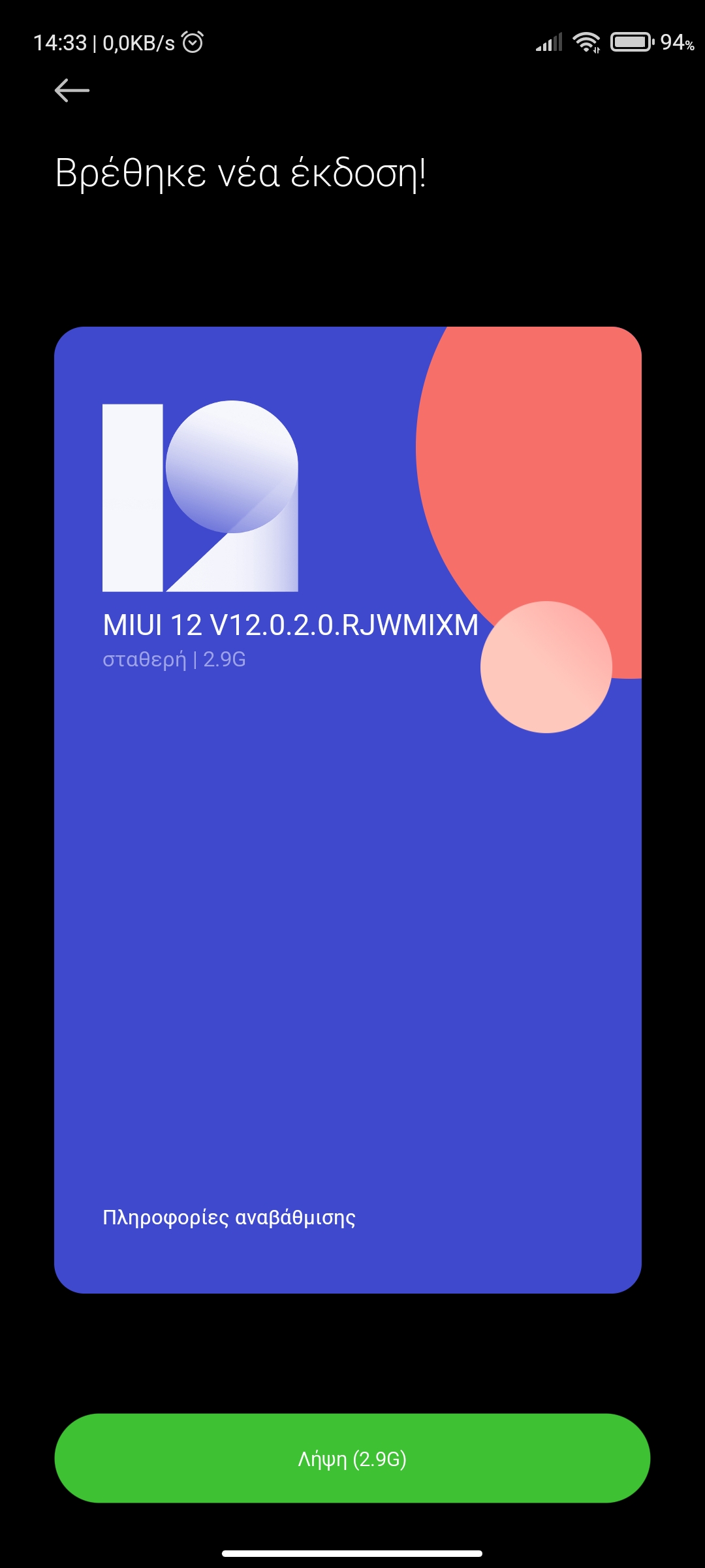 Χαίρεται. Μια ερωτηση. Έχω την τελευταία ΧTRV 12.0.6 12.5 miui και μου ηρθε σε ΟΤΑ η 12.0.2 miui 12. Γιατί; Να την κάνω;