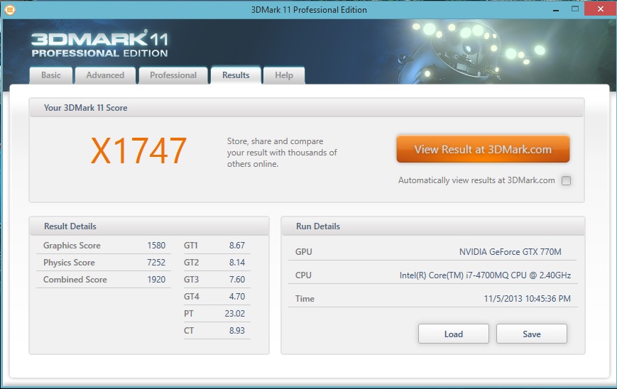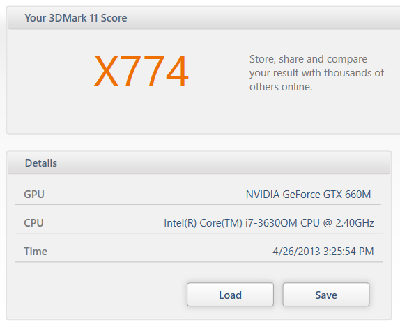 Από θέμα απόδοσης, η νέα κάρτα φαίνεται να προσφέρει διπλάσιες επιδόσεις από τον προκάτοχό της, GTX 660M. Ενδεικτικά, σημείωσε 5157 Graphic score στο Performance Mode του 3D Mark11 έναντι 2360 της GTX 660M! Συγκριτικά να αναφέρουμε πως μια Intel HD4600 σημειώνει 1274 Graphic score στο ίδιο τεστ.