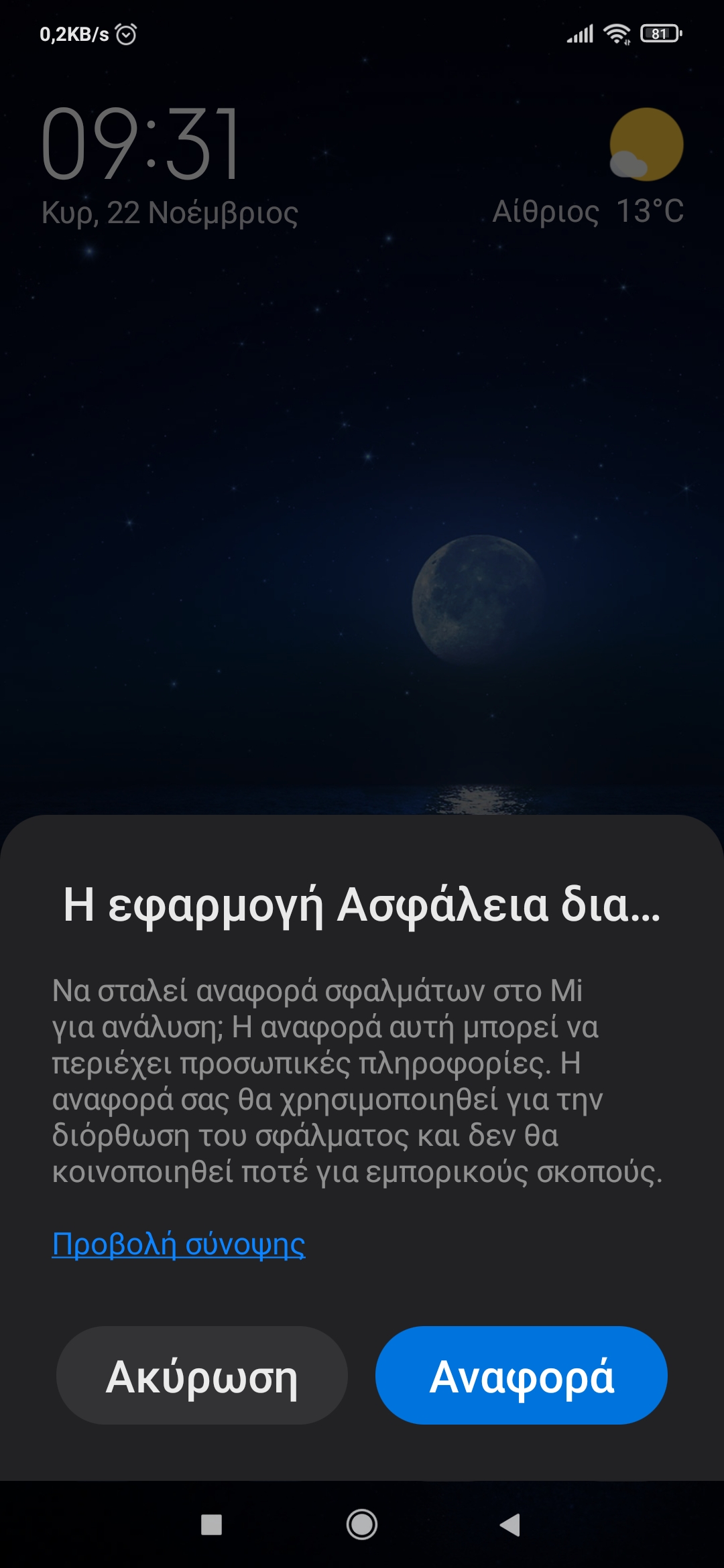 ΕΠΕΙΓΟΝ η Εφαρμογή Ασφάλεια έχει κολλήσει. Δεν μπορώ να λειτουργήσω το τηλέφωνο.