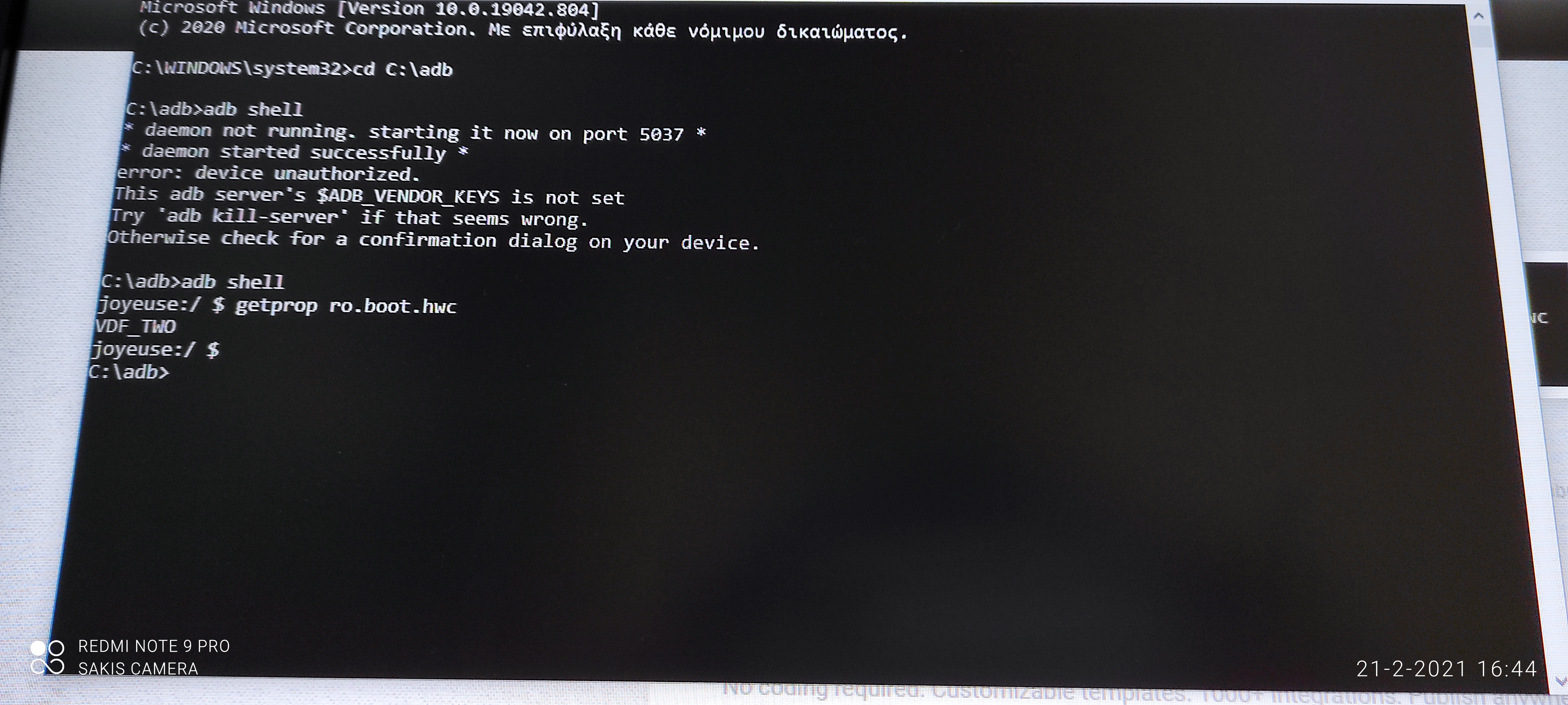 getprop ro.boot.hwc (enter)