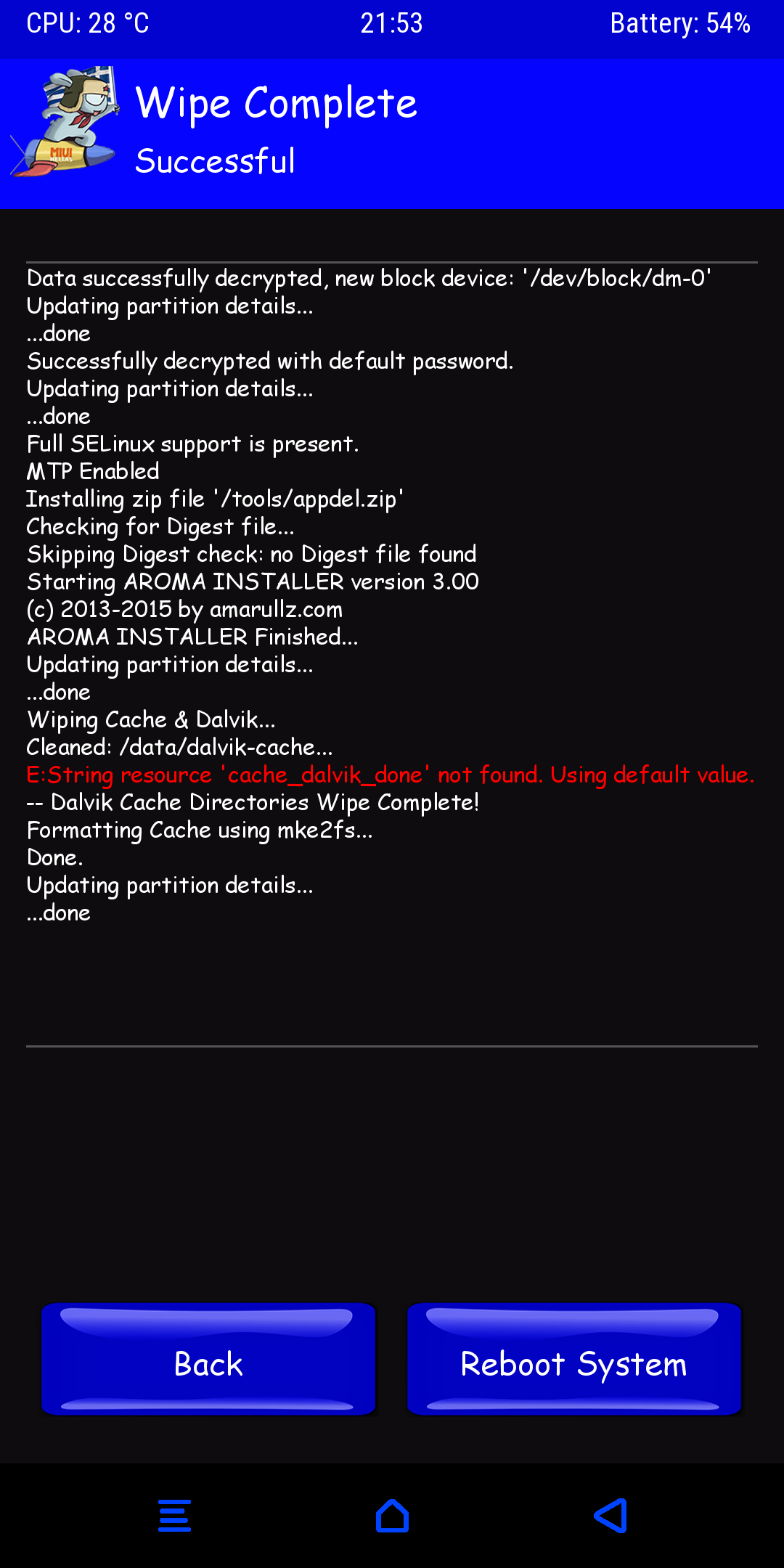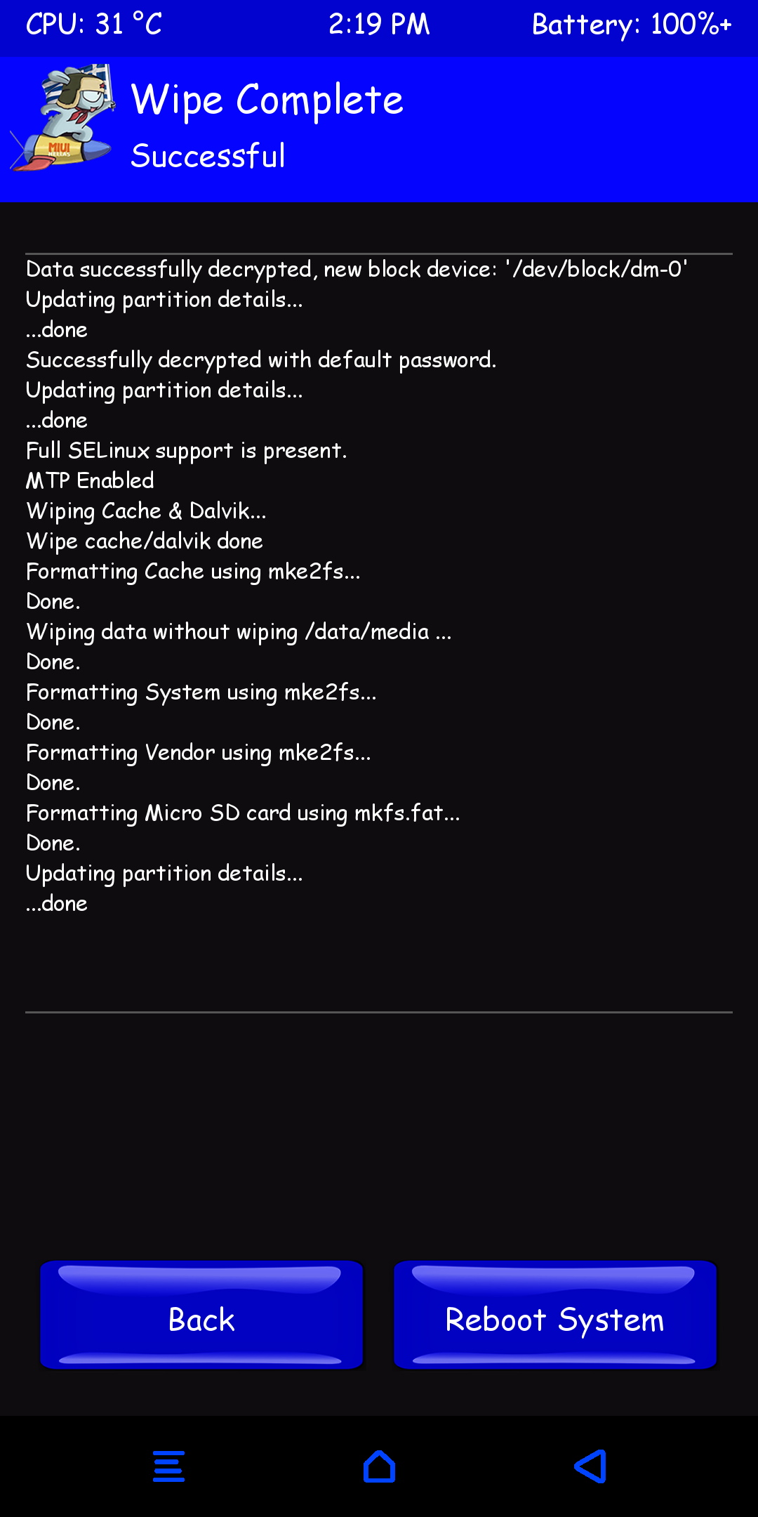 ολα τα wipe εκτος internal που το χρειαζομαι.. -