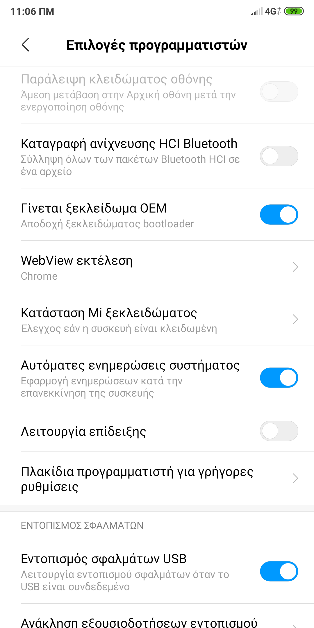 Χτύπα επτά φορές το miui version , να ενεργοποιηθούν τα developer options... -