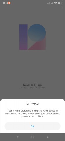 Μετά την εγκατάσταση του καινούργιου twrp και νέας miui έκανα data format...