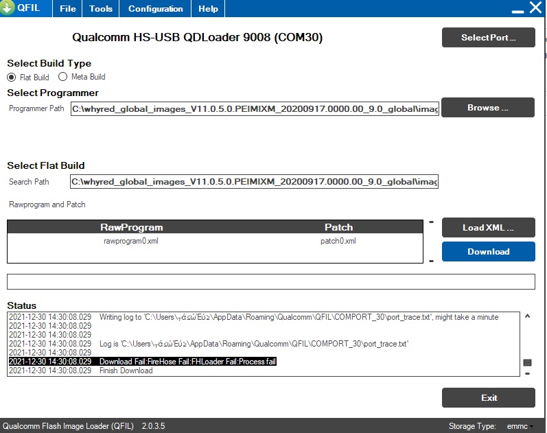 Έκανα αντιγραφή και επικόληση ξανά το patched firehose αρχείο στο φάκελλο images, αλλά ξανά το ίδιο...