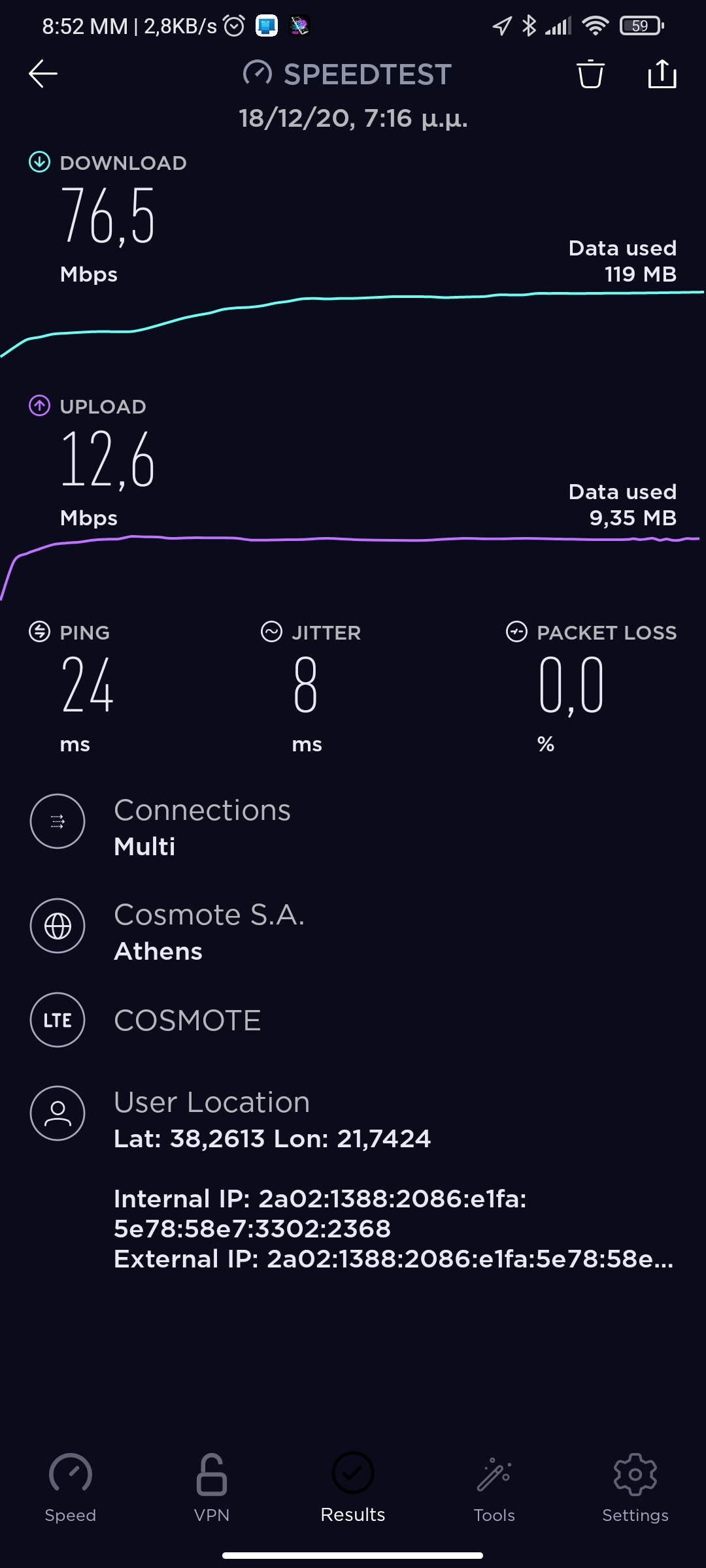 Αυτός cosmote εγώ Vodafone. Το mi10T σε 4G έγραψε download 140mbps εγώ 5 με το ζόρι. Σε 5G το mit10 πήγε μέχρι 60-70.