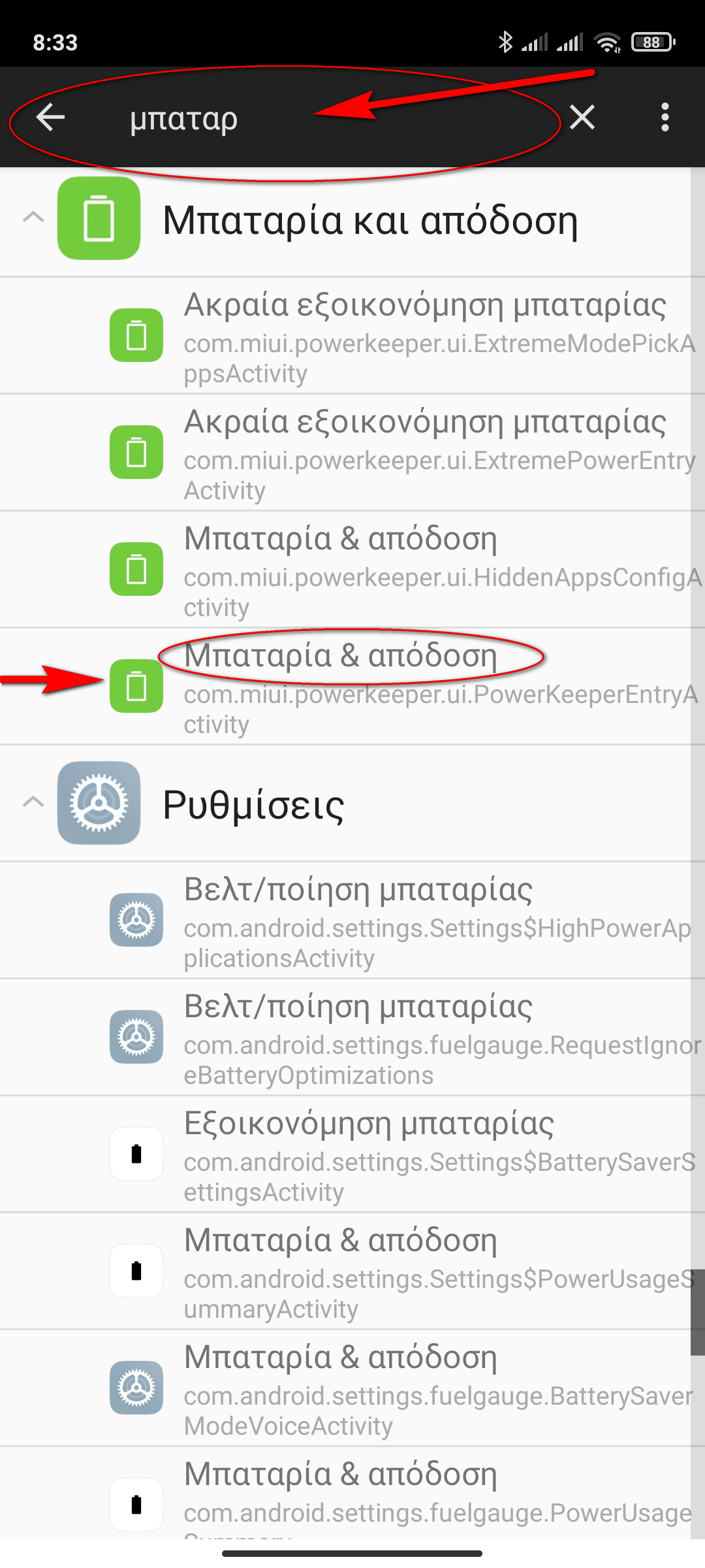 και στο ψαχτήρι που έχει επάνω πληκτρολογείστε "μπαταρία", έπειτα κάντε αυτά που βλέπετε στα screenshots και απενεργοποιείστε την επιλογή. Μπορείτε ανά πάσα στιγμή με τον ίδιο τρόπο να την ενεργοποιείτε. Αν θέλετε βγάλτε και το app η ρύθμιση παραμένει (αν και φαίνεται χρήσιμο).