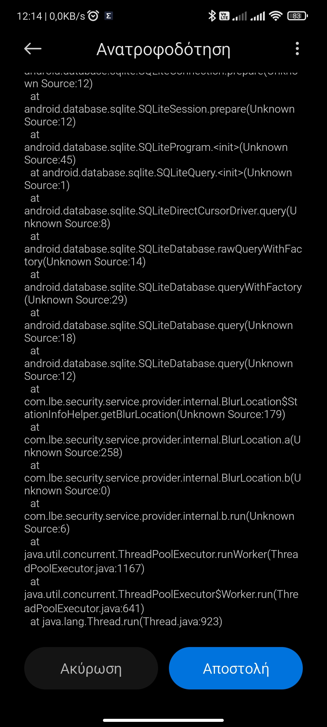 Πρόβλημα με 'Η εφαρμογή άδειες διακόπτεται επανειλημμένα'