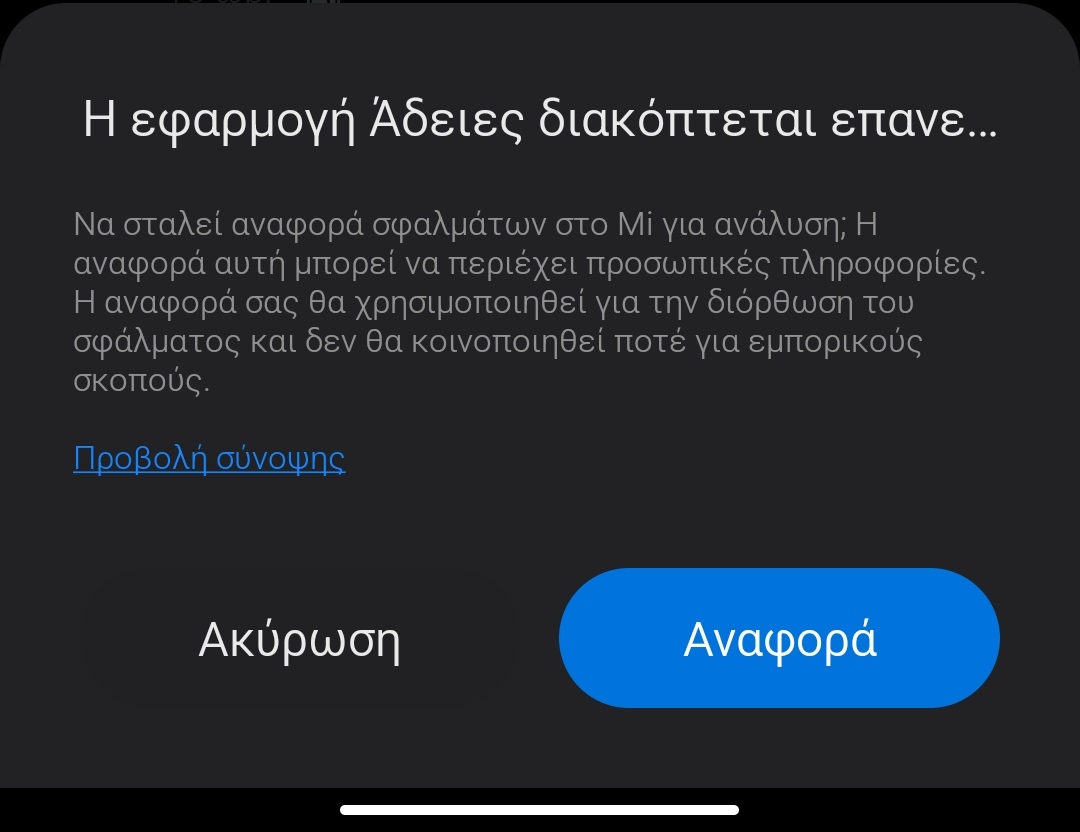 Πρόβλημα με 'Η εφαρμογή άδειες διακόπτεται επανειλημμένα'