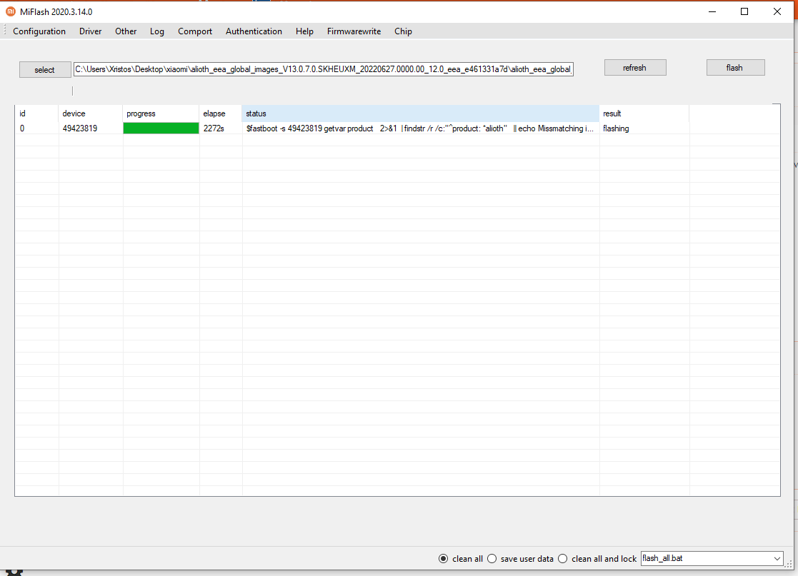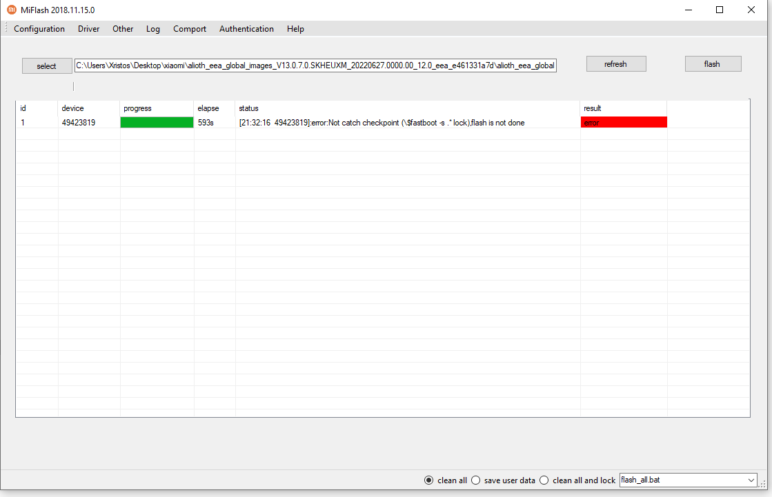 Τώρα είδα ότι έχεις επιλέξει clean all, πιθανόν το σφάλμα οφείλεται στο ότι δεν κλειδωσες bootloader, αν άνοιξε αγνόησε το.