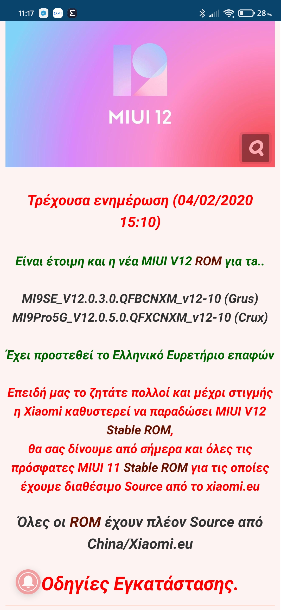 • [Stable] MIUI V12.X.X.X ROM (Λίστα διαθέσιμων MIUI 12 ROM) Ενημέρωση 04/02/2020