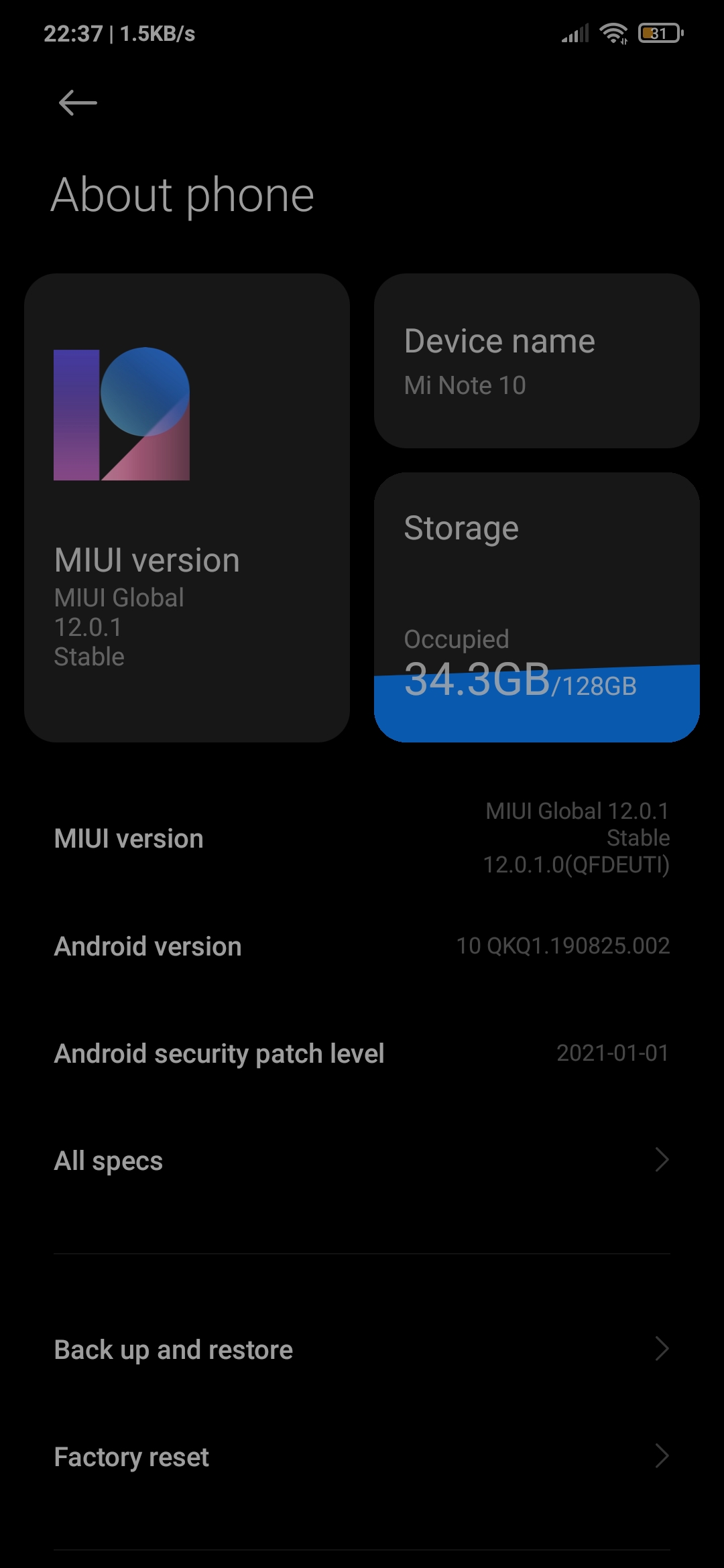 Καλησπέρα. Tο mi note 10 μου έχει αυτή την έκδοση miui. Ξέρει κάποιος αν είναι η σωστή; Έψαξα την κωδική ονομασία της και δεν βρήκα κάτι. Μου φαίνεται λίγο ύποπτο να μην έχει αναβαθμιστεί σε 12.5 μιας και το note 10 lite της γυναίκας μου αλλά και το Redmi 9 της μάνας μου έχουν 12.5. ευχαριστώ.