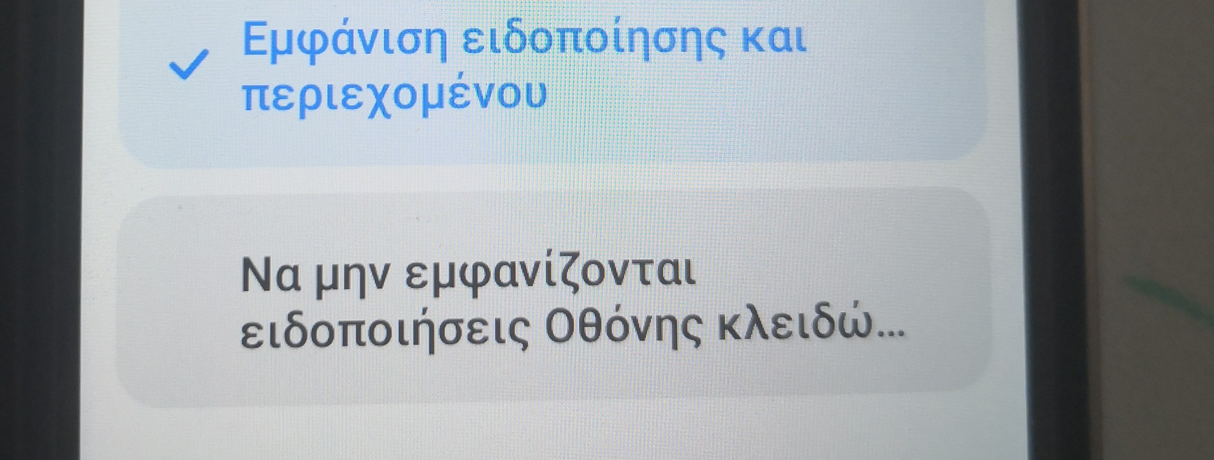 Αποκρυψη πληροφοριών ειδοποιησεων