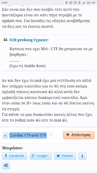 Ορίστε το Mi4 lte ανάμεσα στο σήμα και στην μπαταρία το εικονίδιο της GR COSMOTE 4G