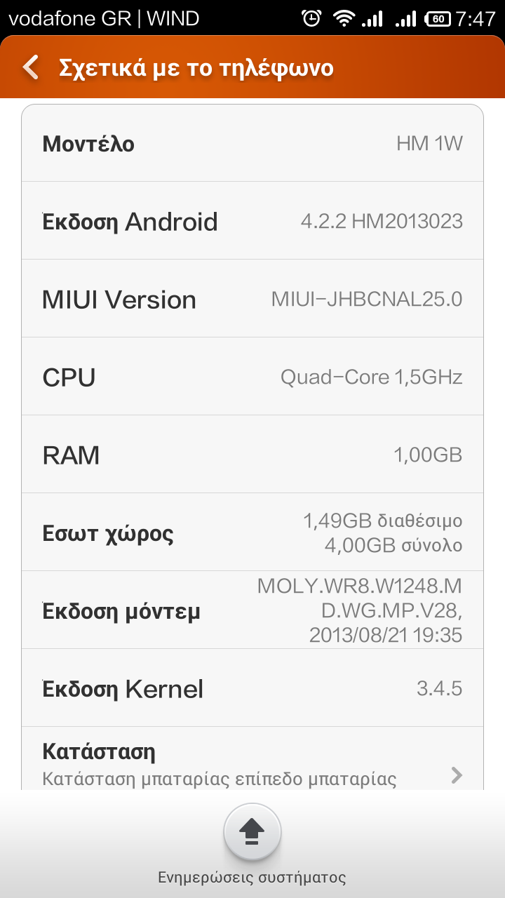 Το πρώτο που θα κάνεις είναι να μπείς στον Updater και να αναβαθμίσεις την συσκευή σου στην τελευταία ROM μας και θα είσα οκ.